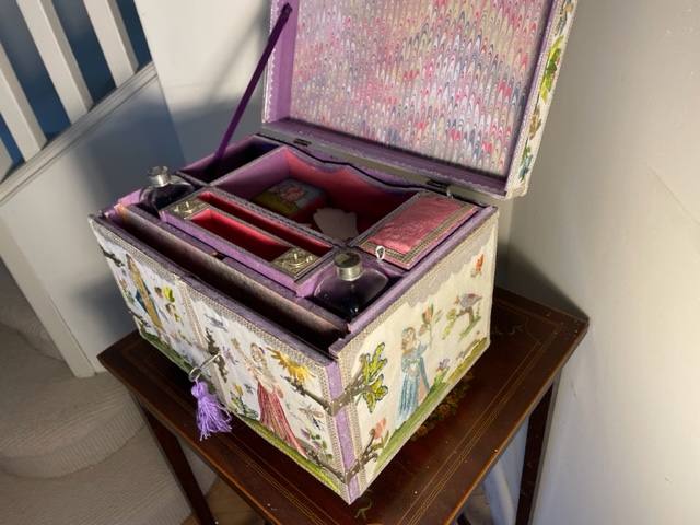 Josephine Wootton's Casket with an amazing marbled paper that matches the purple and pink